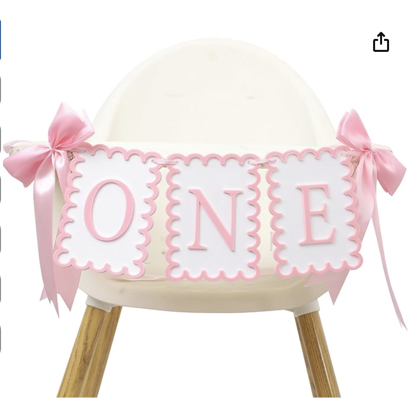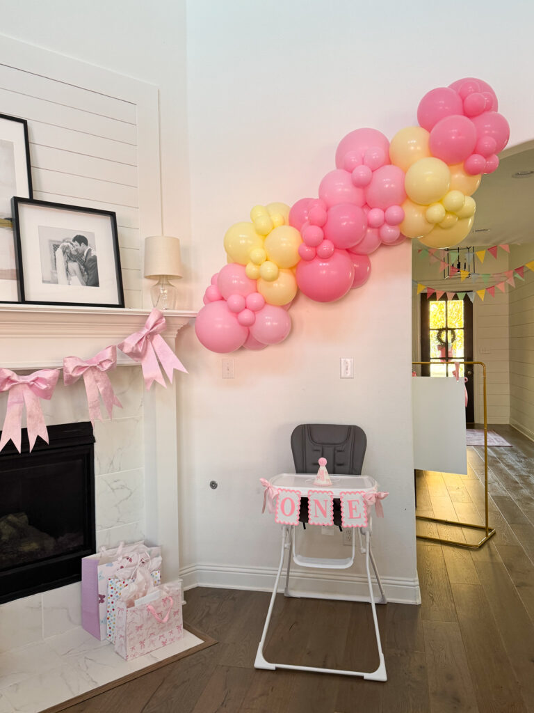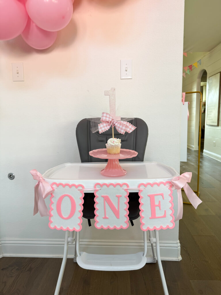 I found this cute ONE high chair banner on SHEIN. I’ve seen these all over, so I’ll link a few options for you! Click on the images to shop. I just used tape to secure the bows on the side and the letters.