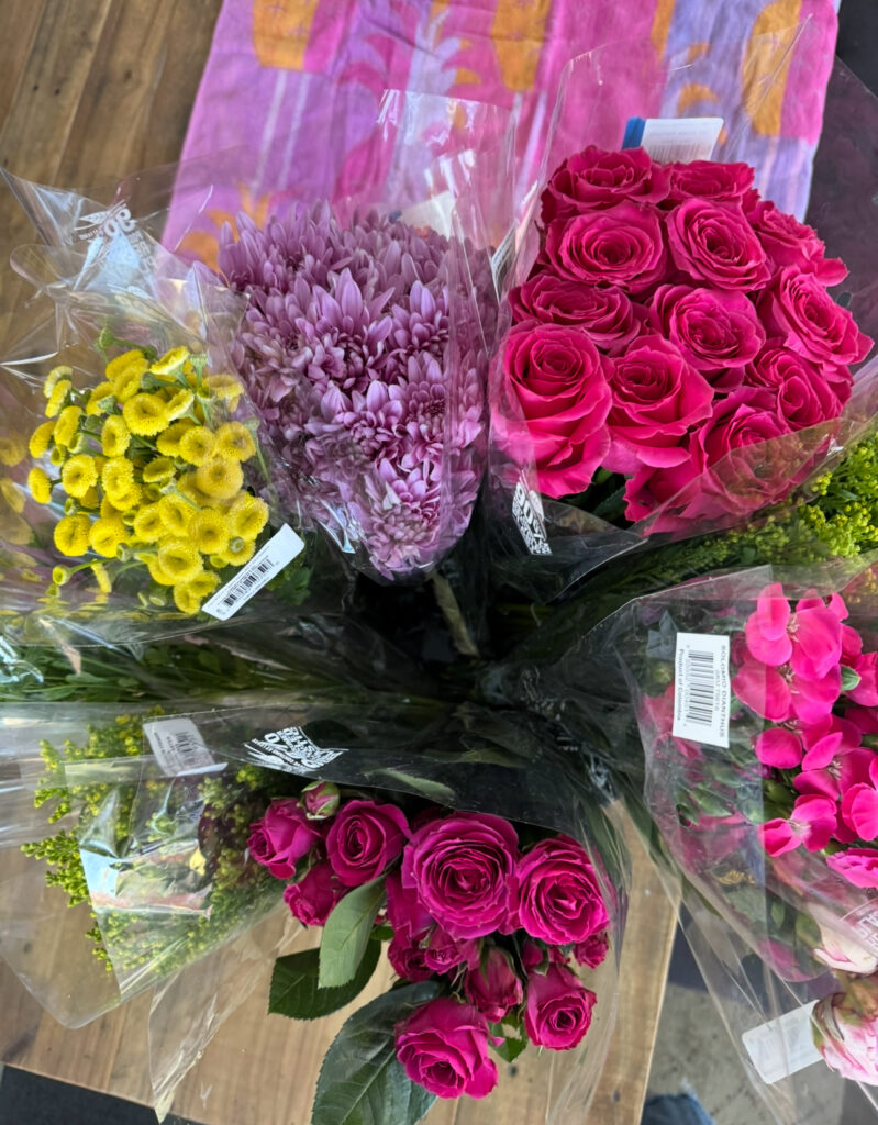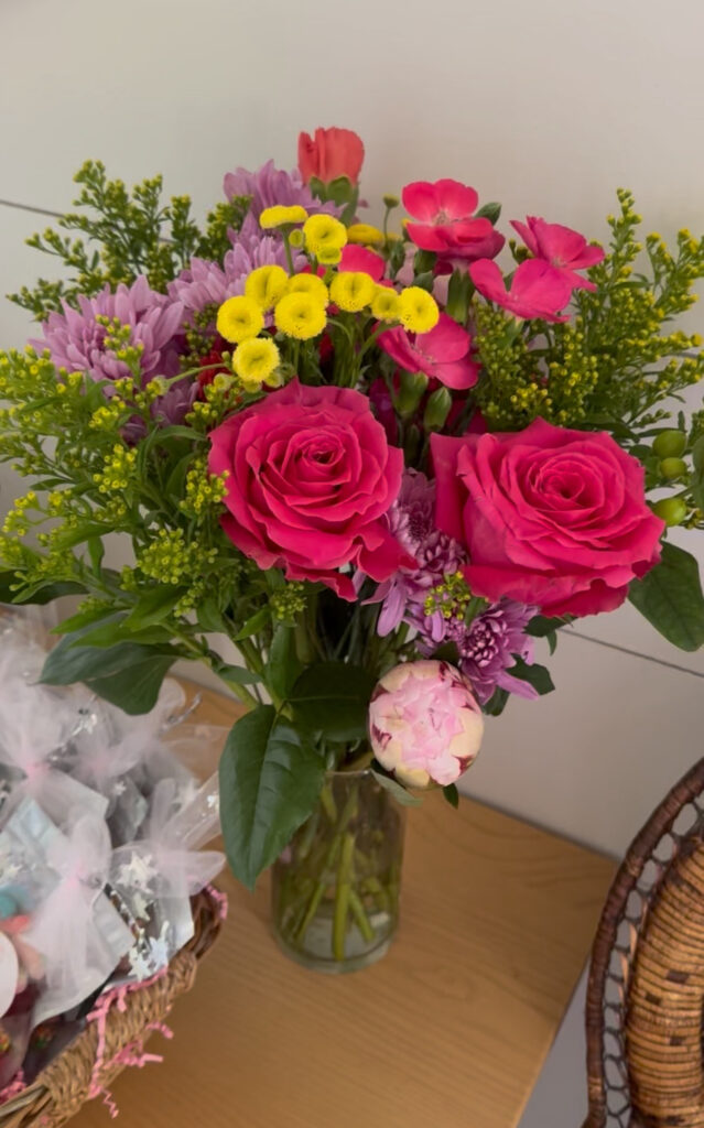 I got all the flowers for the party the day before at Trader Joe’s! I would normally buy 2 large arrangements and put them in the same vase, but since it’s November they were all fall themed. So I bought a bunch of flowers and put the arrangements together myself.