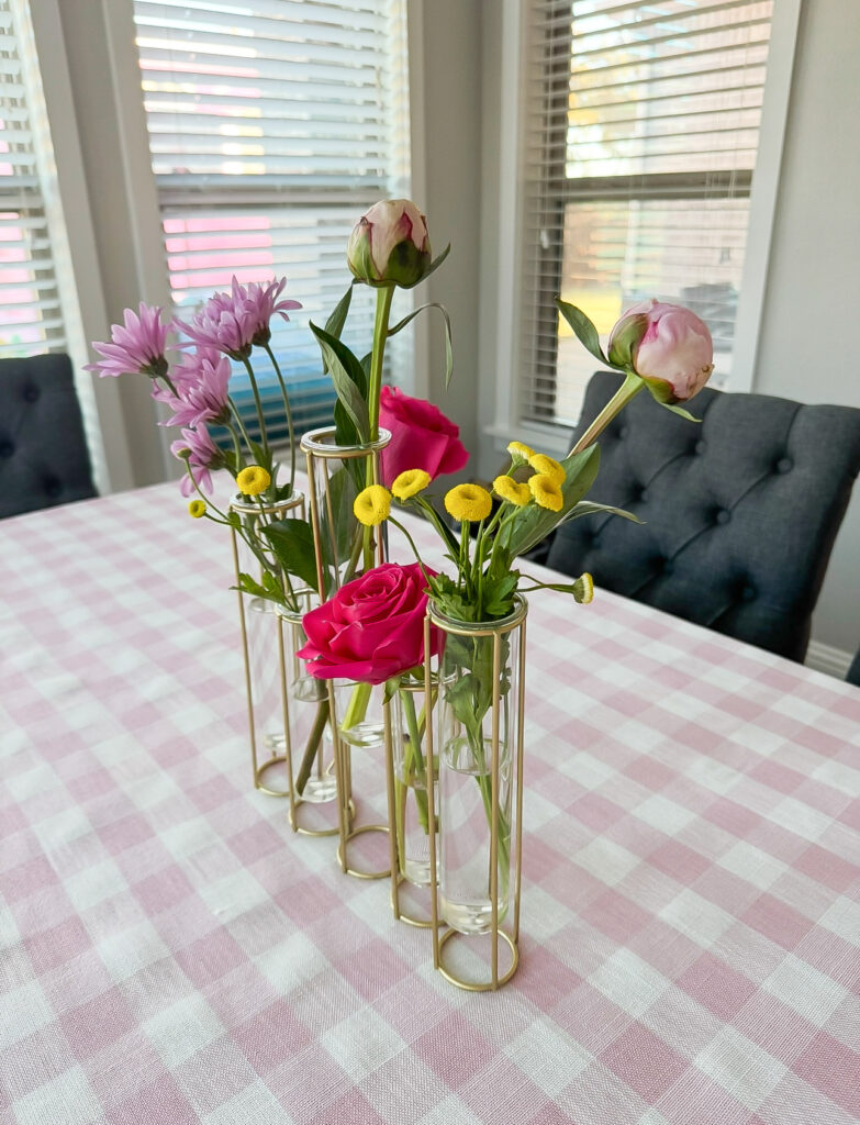 How cute is this pink gingham check tablecloth?! Linked here. Be sure to try it out before the party! I opened everything and set it up a few days before, only to find out the tablecloth I ordered first was too short and didn’t cover the entire table! Thankfully I had time and Amazon Prime to deliver the correct size before the party!