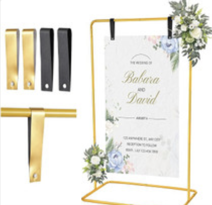 I designed this in Canva and then had it printed at Walgreens. No joke – it was ready in an hour after I placed the order! I am so happy with how it turned out! I printed it on 20×30 Paper Board. There was a 50% coupon available and this ended up being around $17. My husband drilled holes in the top and I tied ribbon through it to hang it on this gold sign display stand. I initially had the board on an easel, but my husband told me it looked like a funeral (LOL), so I got this gold stand instead!