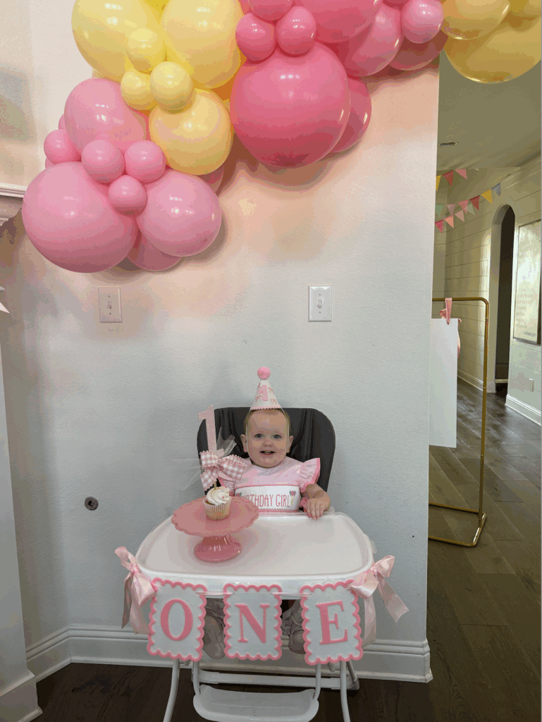 Having a girl has been a dream of mine since…well, forever. I had SO much fun throwing this party with everything pink and girly for my baby’s first birthday! In this blog post I will share where I got all the pink decor, some things I had fun diy and making myself and of course her cute outfit and activites!